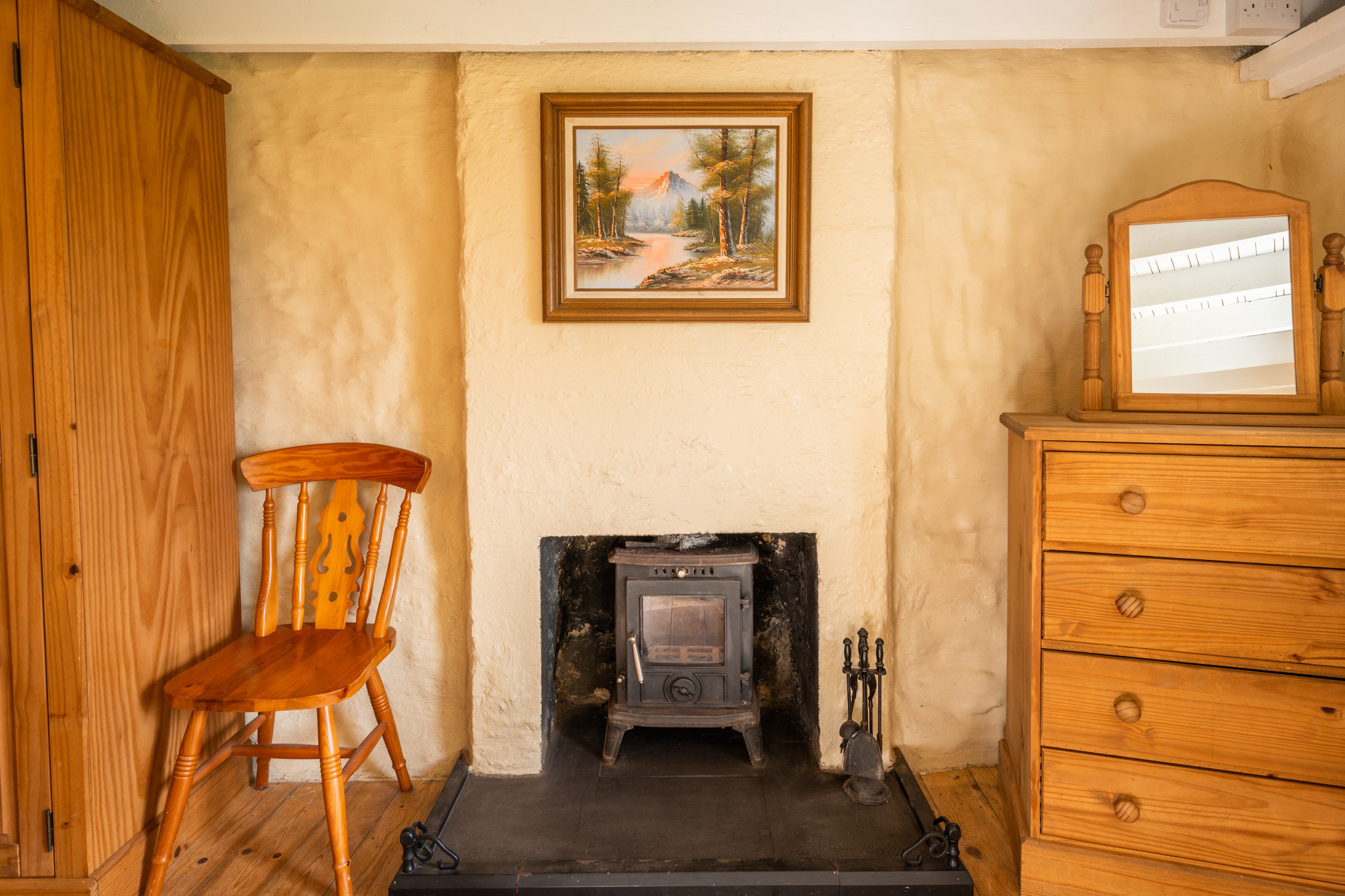 The multi-fuel stove in the double bedroom.